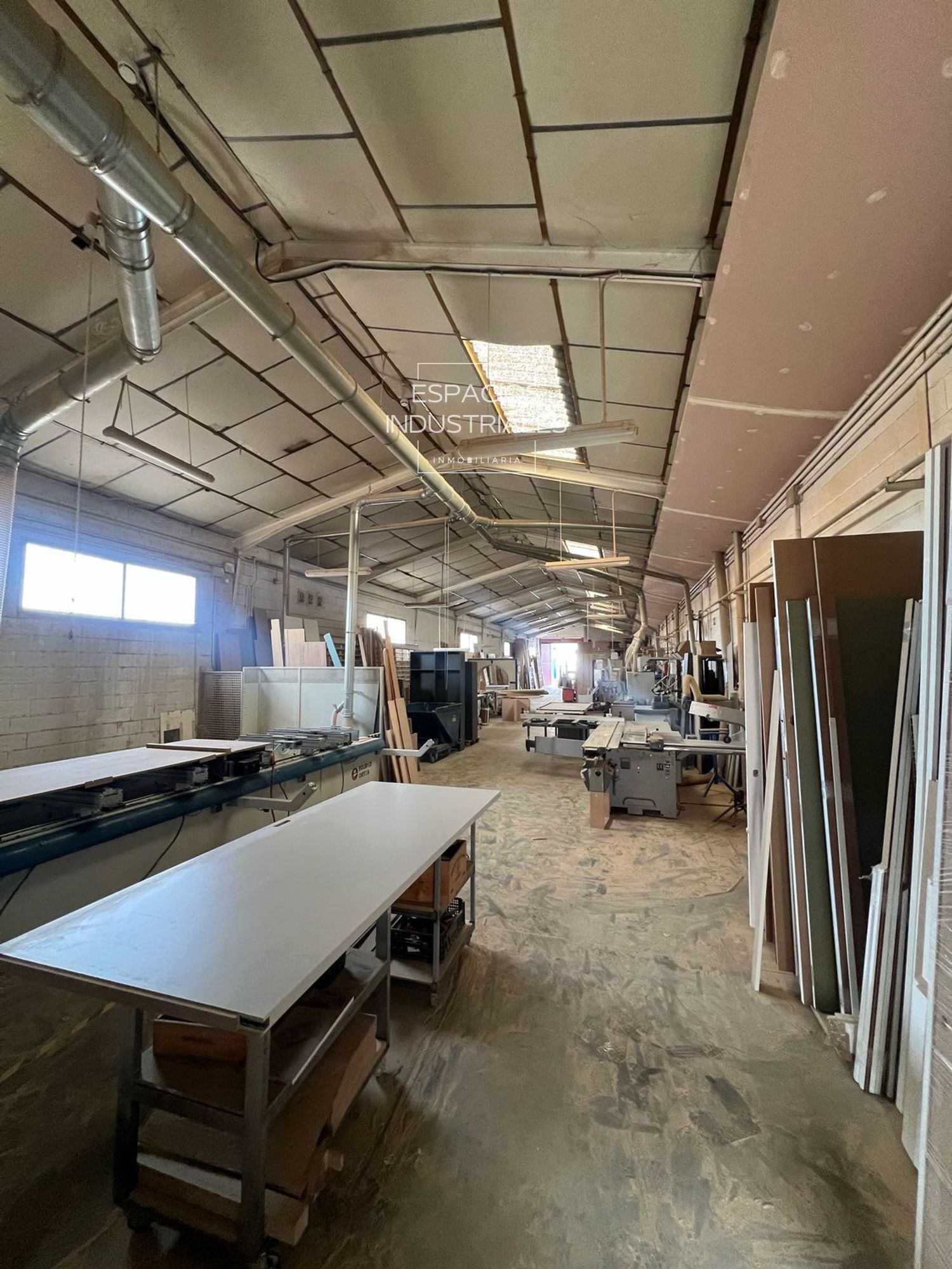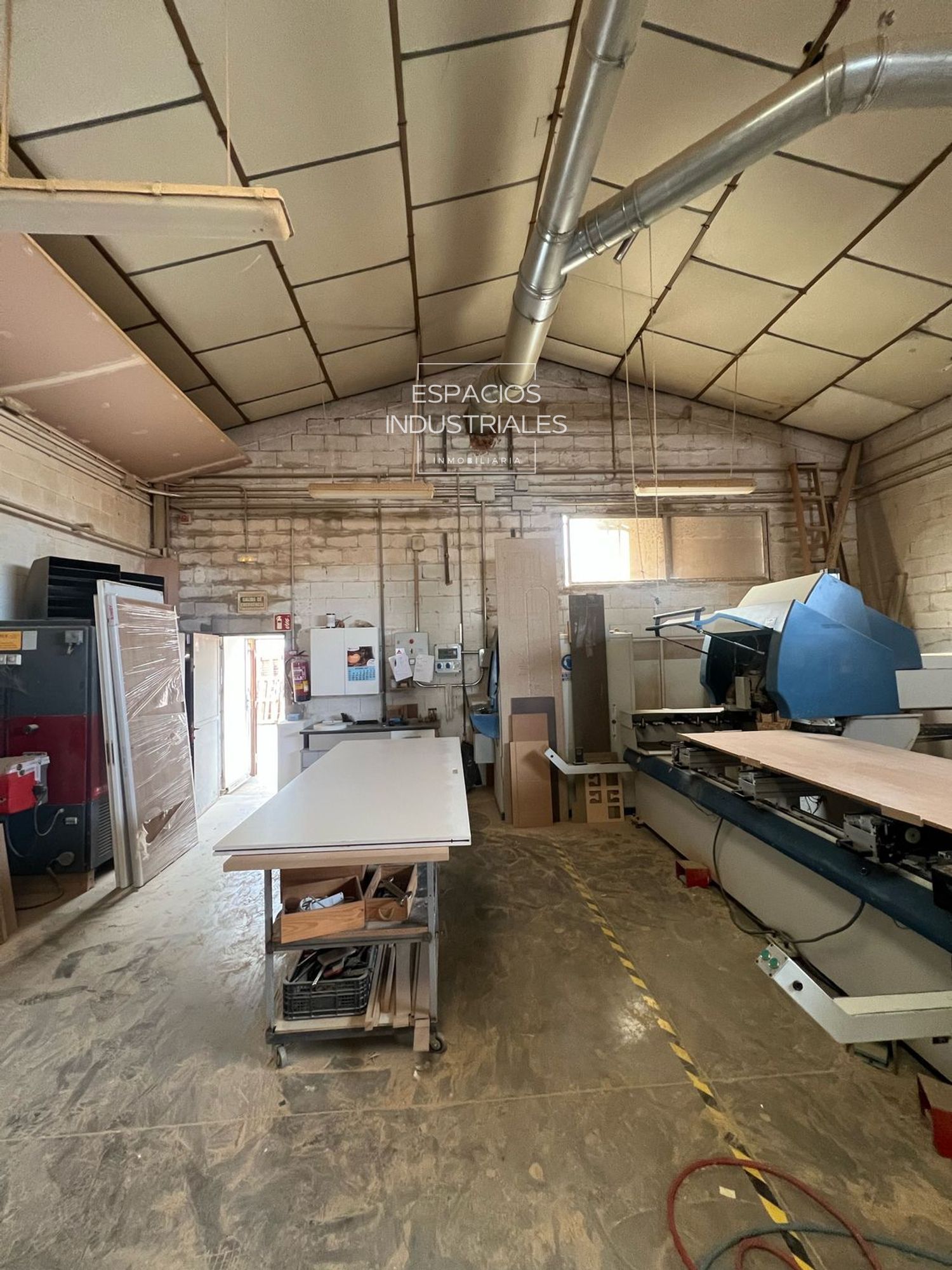 Equipada con electricidad trifásica (380V) de alta capacidad, ignifugación para la seguridad, Sistema PCI (Protección Contra Incendios) completo, grupo de aire comprimido instalado y sistema de aspiración de aire industrial, garantizando un entorno de trabajo seguro y eficiente.