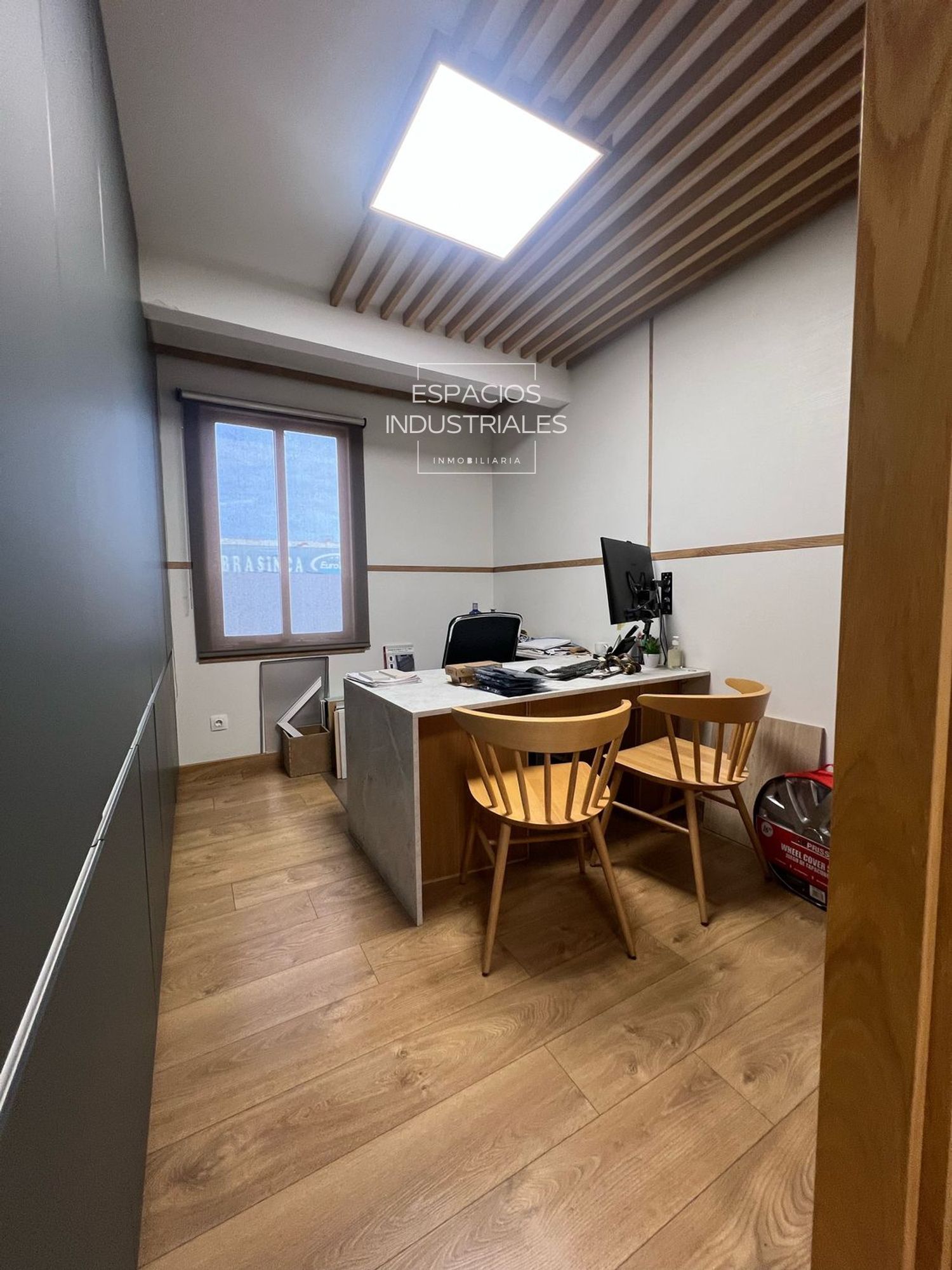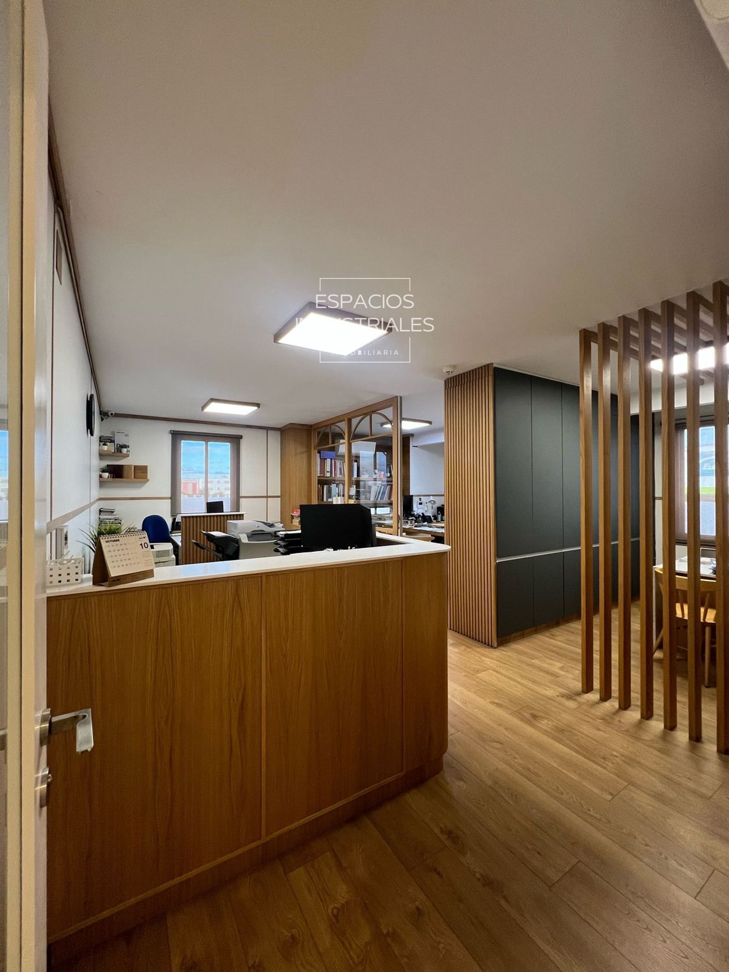Oficinas de Máxima Calidad de 89 m².  El área de oficinas ha sido ejecutada con máximas calidades y se encuentra en un estado excelente, lista para ser ocupada. Incluye 3 oficinas privadas, una sala de reuniones profesional, un práctico office (cocina/área de descanso), vestuarios completos con aseos y un área de almacenaje dedicado, asegurando la comodidad y la funcionalidad del personal.