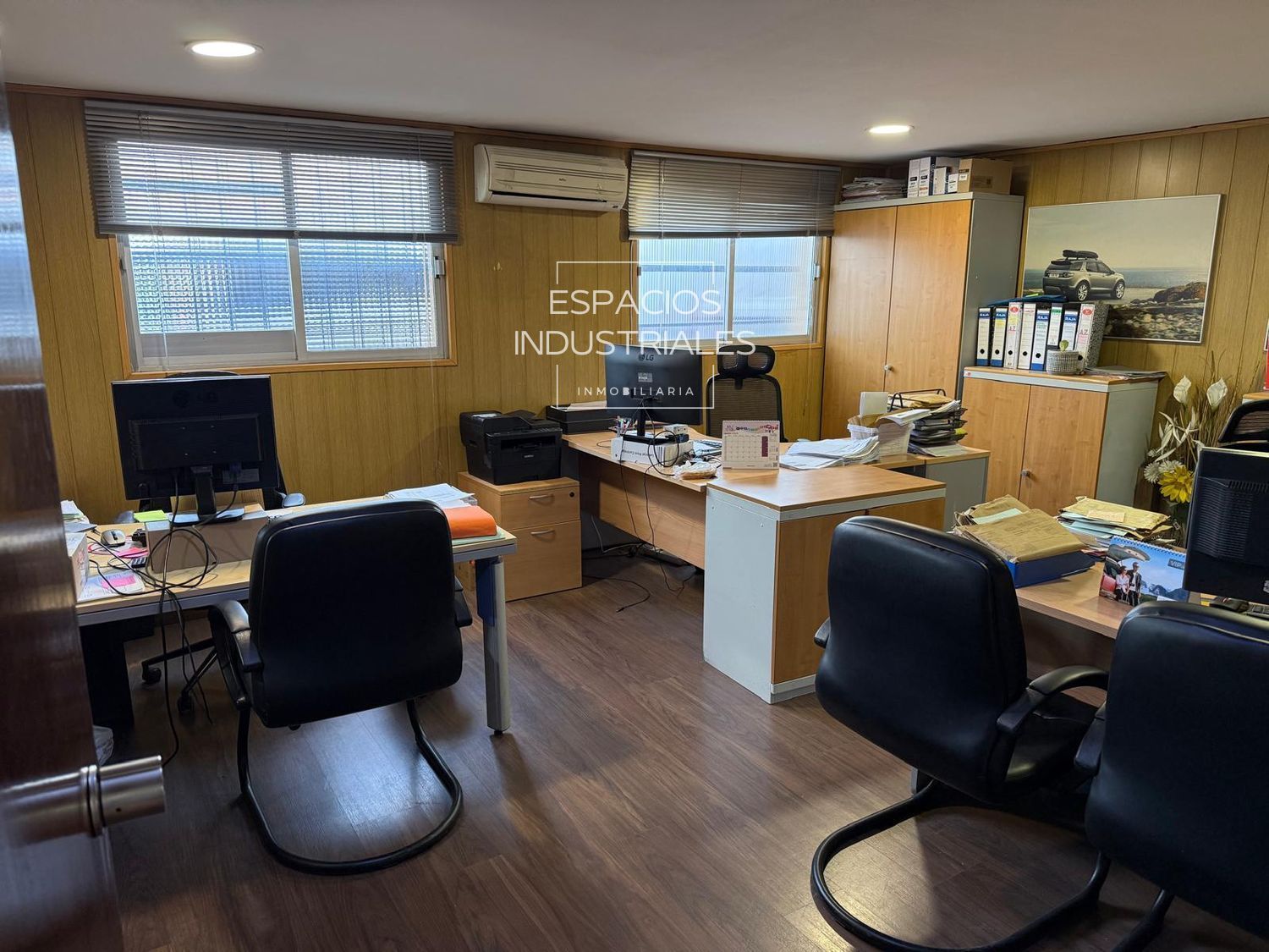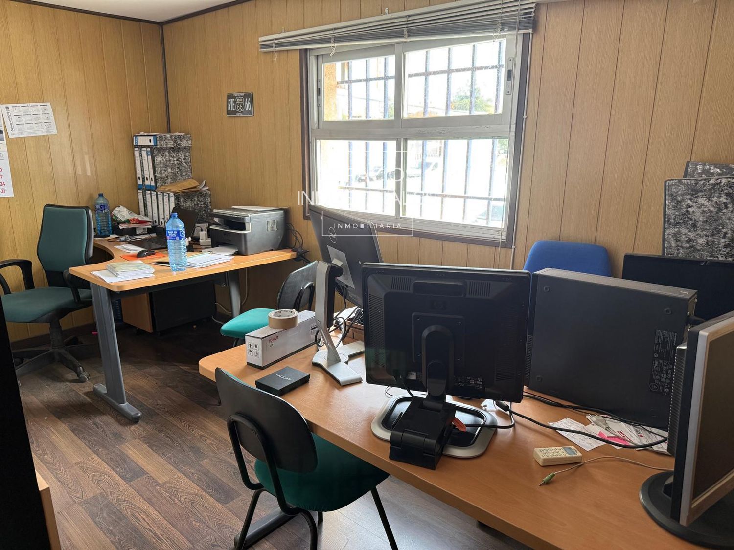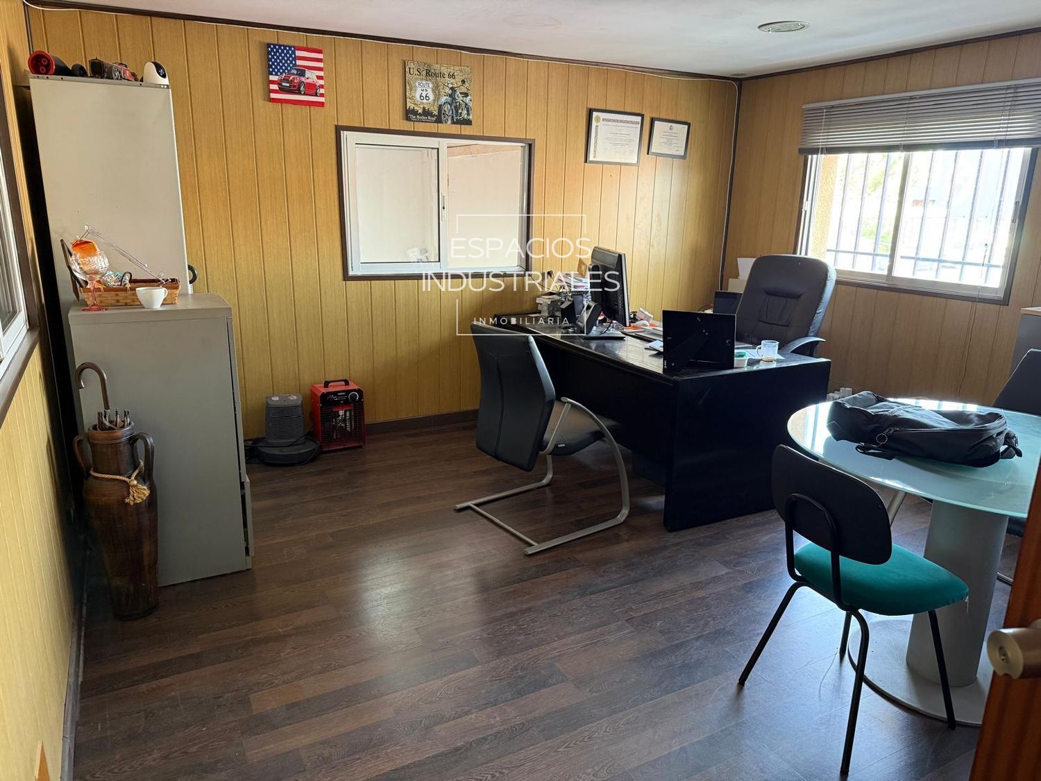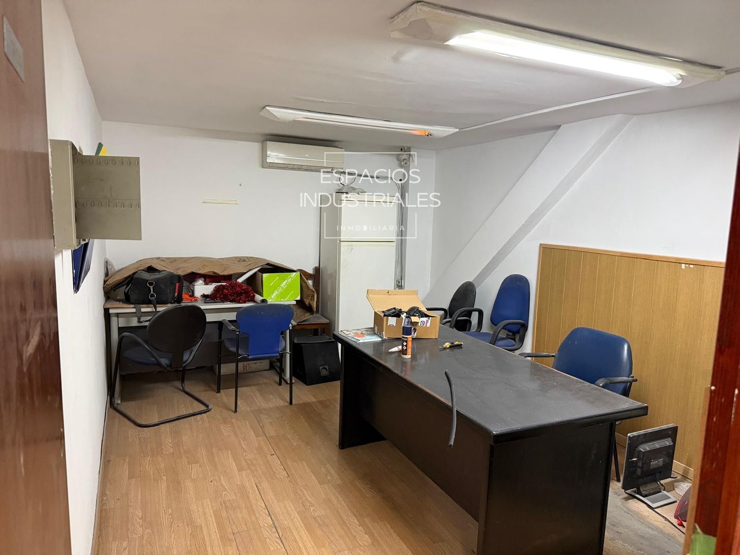 El inmueble cuenta con aproximadamente 100 m² de oficinas distribuidas en zonas superior e inferior (en ambas estancias), además de zonas de vestuario y baños completos para el personal en cada división. La zona de taller incorpora un área de almacén específica para repuestos.