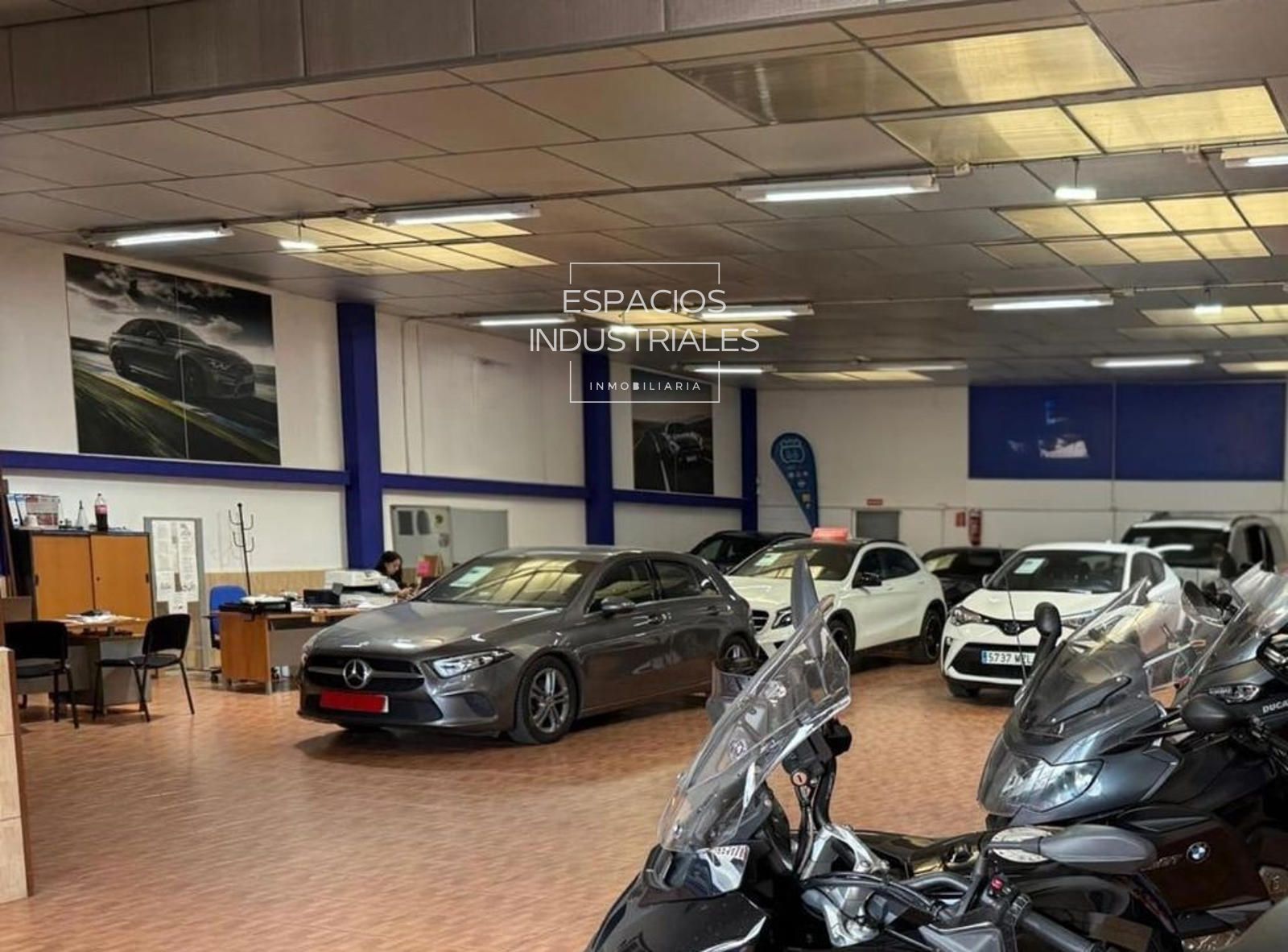 La nave está inteligentemente dividida internamente en dos estancias separadas con acceso independiente: una dedicada a exposición y venta y la otra al taller de chapa y pintura completamente equipado.